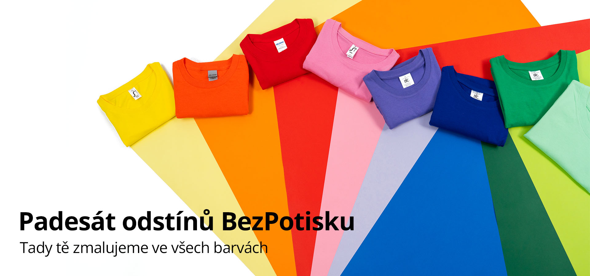Svět BezPotisku je nádherný, růžový, zelený… a ještě 48 dalších barev. Byla by škoda, vybrat si jen jednu. Odlož na chvíli šeď a nudu a vyzkoušej barvu, která ti sedne. BezPotisku tě zmaluje na desítky způsobů.