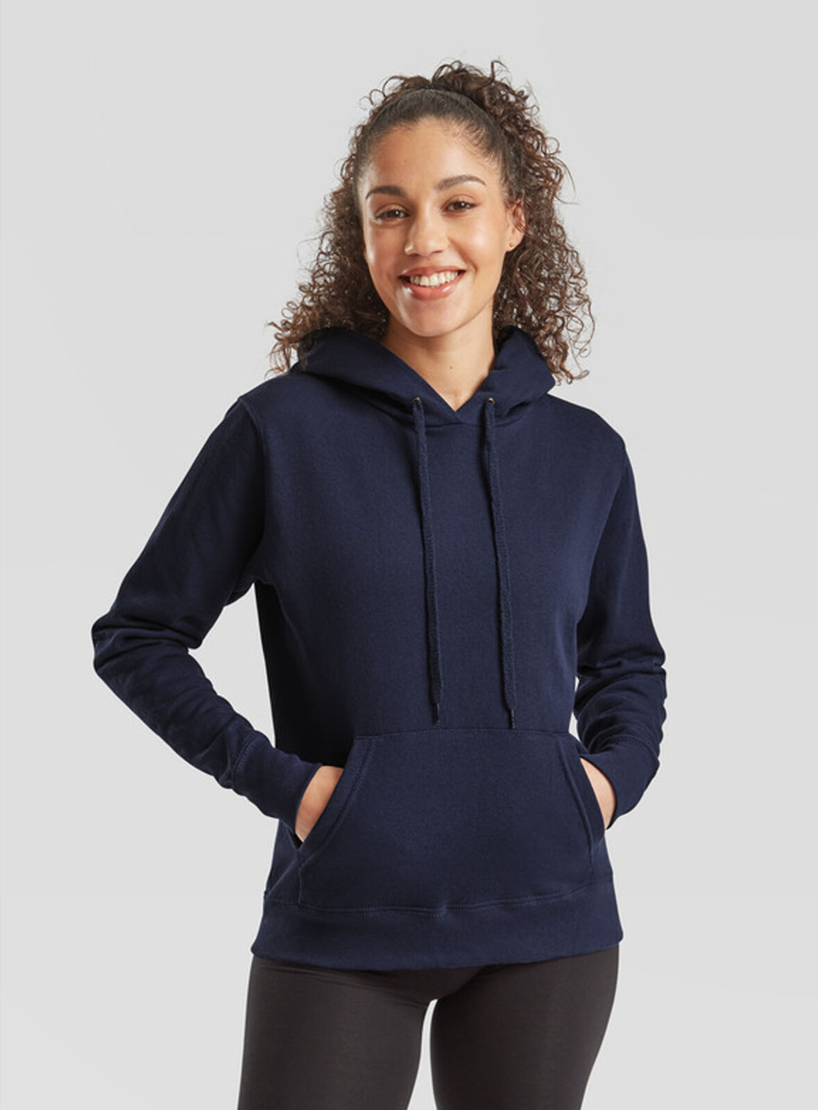 Dámská mikina Fit s kapucí spojuje pohodlí a moderní střih. Má dvojitou kapuci s barevně sladěnou šňůrkou, klokaní kapsu a tvarované boční švy pro lepší přizpůsobení postavě. Žebrované manžety a pas s příměsí Lycry® zajišťují perfektní tvarovou stálost.