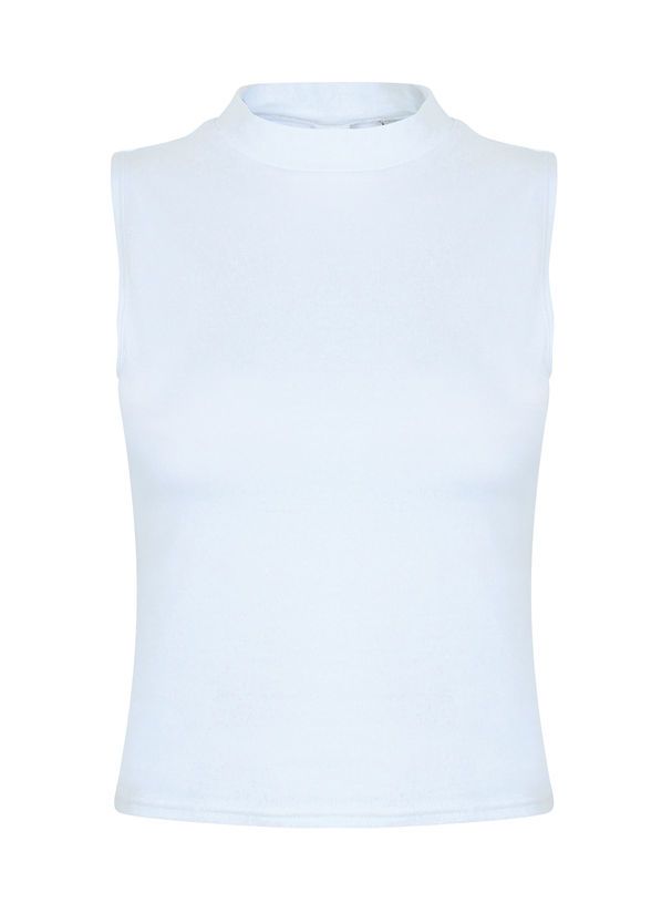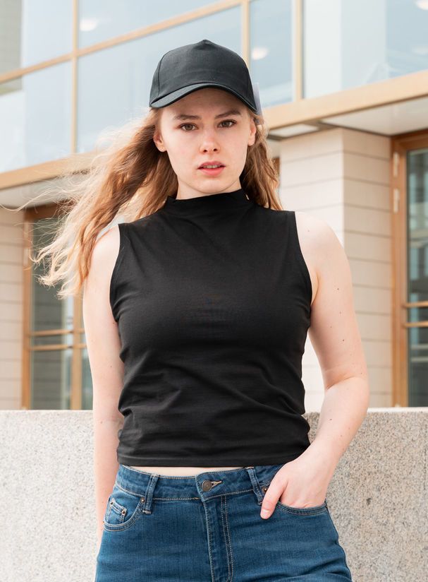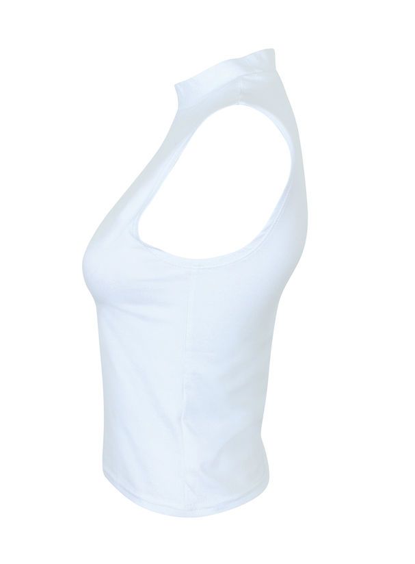 Dámské crop tílko se stojáčkem bez výstřihu. Materiál je prodyšný a pružný díky příměsi elastanu. Střih je přiléhavý v délce pod pupík. Tílko je spíše úzké, při výběru velikosti věnujte prosím pozornost tabulce.