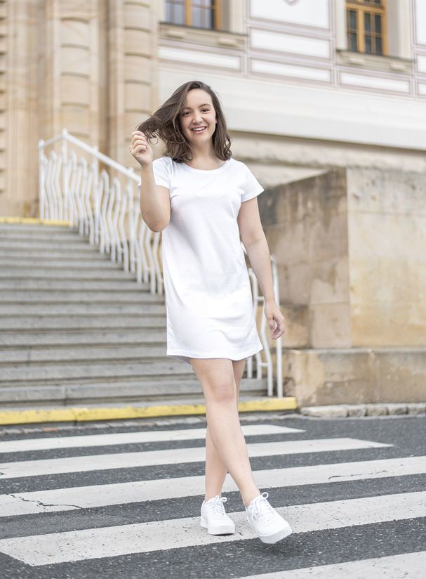 Libujete si v legínách a v uvolněné pohodlné módě? Pak vám extra dlouhé tričko z velmi jemné bavlny padne jako ulité. Pokud ho zkombinujete s ozdobnou šňůrkou nebo kontrastním páskem, proměníte tričko v jednoduché vzdušné šaty. Tento produkt má certifikaci GOTS vztahující se na výrobu nikoliv na dopravu.