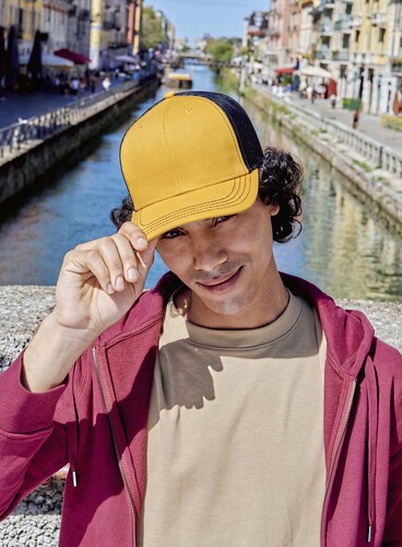 Unisex kšiltovka s mírně zahnutý kšiltem. Má 4 ozdobné švy na kšiltu, strukturovanou přední část a obšité větrací otvory. Díky regulaci v zadní části je její velikost opravdu univerzální.