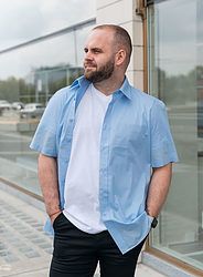 Pánská klasická košile s dlouhým rukávem. Materiál je lehký a díky příměsi se dobře udržuje. Střih je celkově široký regular fit s volnými rukávy, vhodný pro širší ramena. Doporučujeme věnovat zvýšenou pozornost tabulce velikostí.