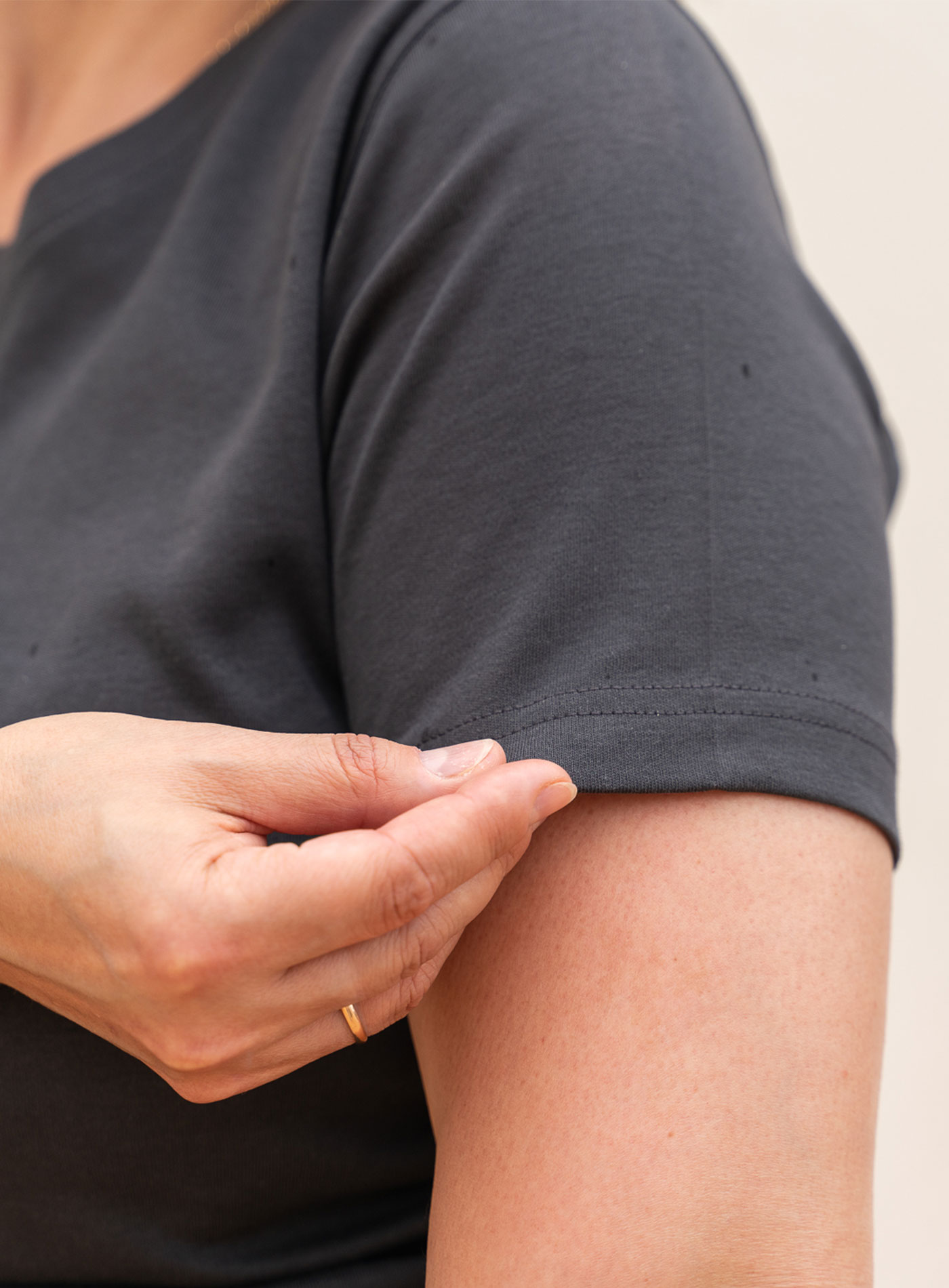 delší tričko z pevné pleteniny. kupuji už poněkolikáté.