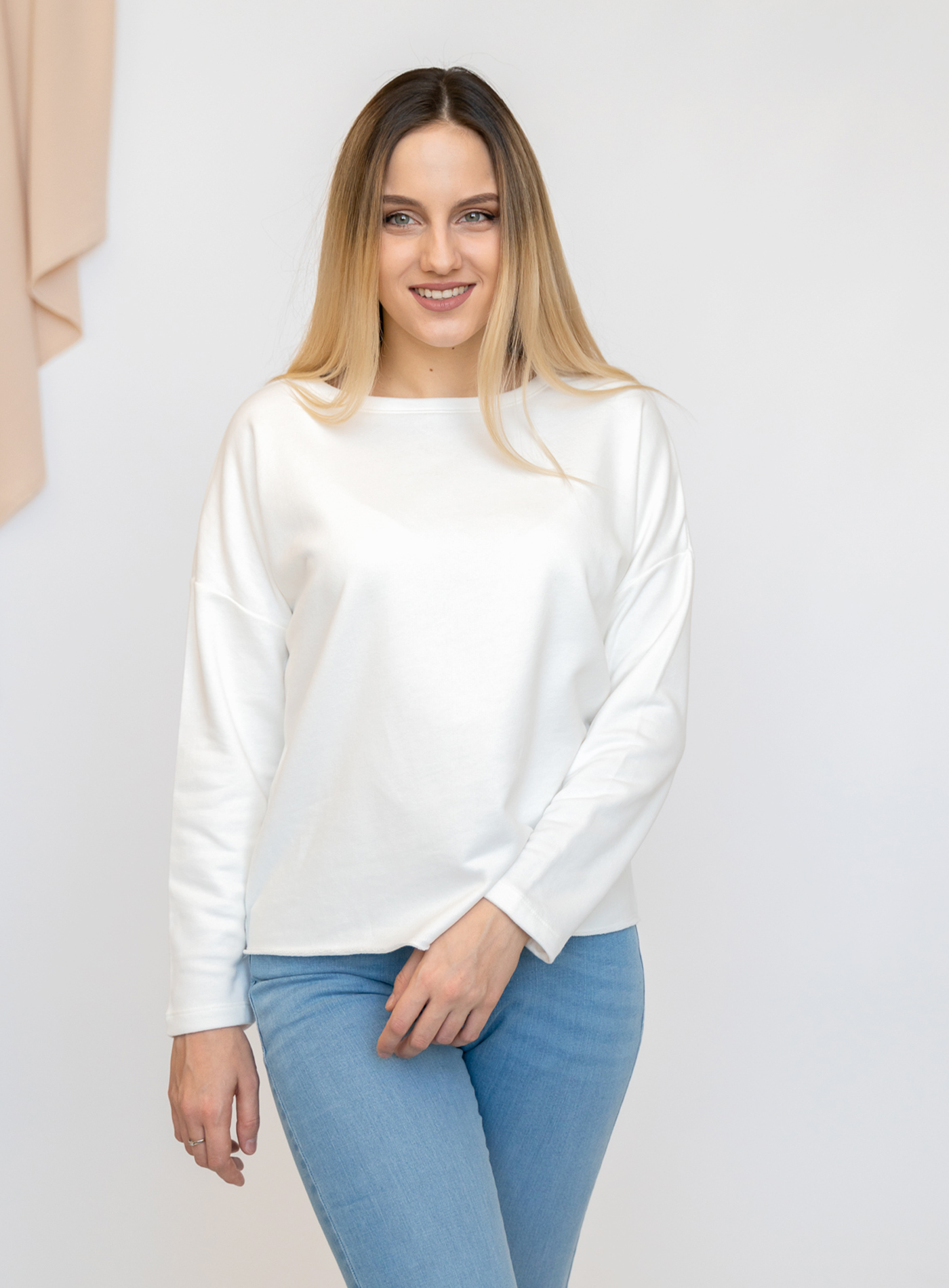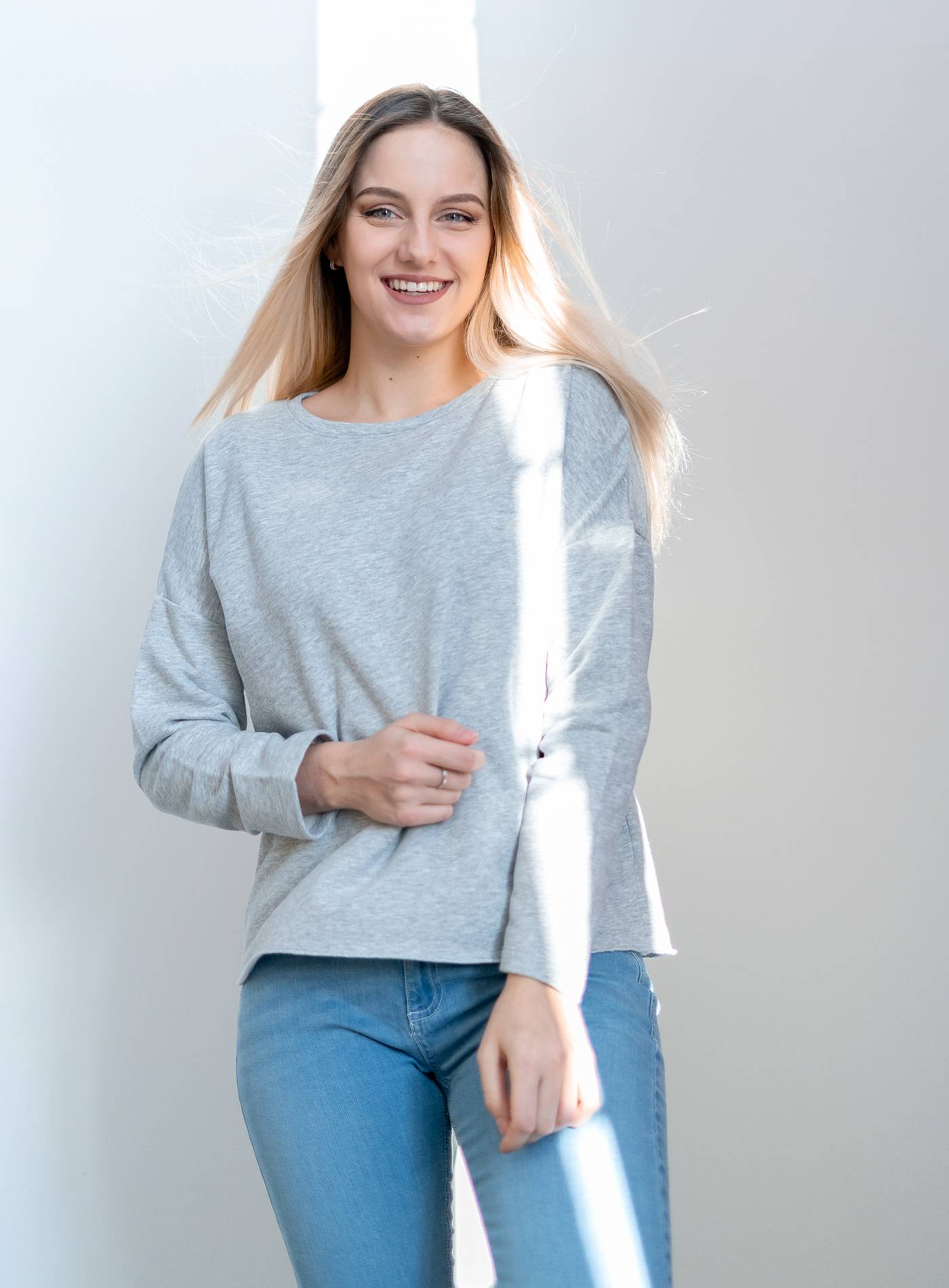 Dámská mikina v moderním volném střihu. Ten doplňuje široký výstřih a originální zakončení spodního lemu, který působí jako ustřižený. Mikinu oceníte pro veškeré volnočasové aktivity, procházky nebo třeba i domácí lenošení. Díky kombinaci materiálu bavlny a polyesteru získává mikina nemačkavé vlastnosti a je velmi příjemná na nošení.