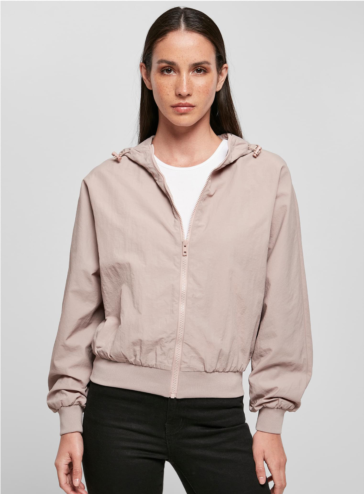 Lehoučká oversized bunda pro ženy. Ideální na jaro nebo letní večery. Netopýří rukávy, zkrácený střih a pomačkaný vzhled dodávají bundě ležérní dojem. Při nevyzpytatelném počasí oceníte umělohmotný zip a velkou kapuci. Lze prát na 30°.